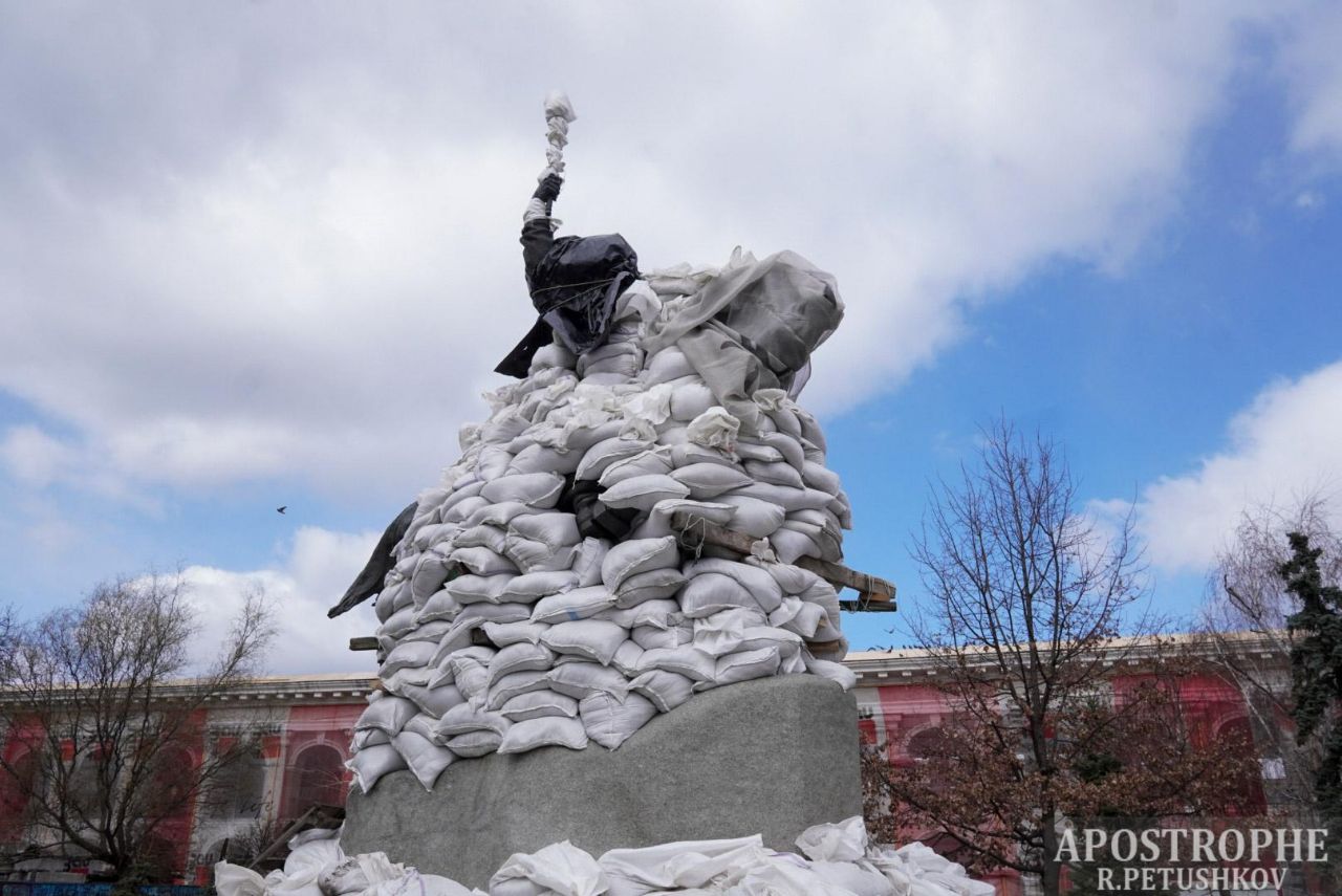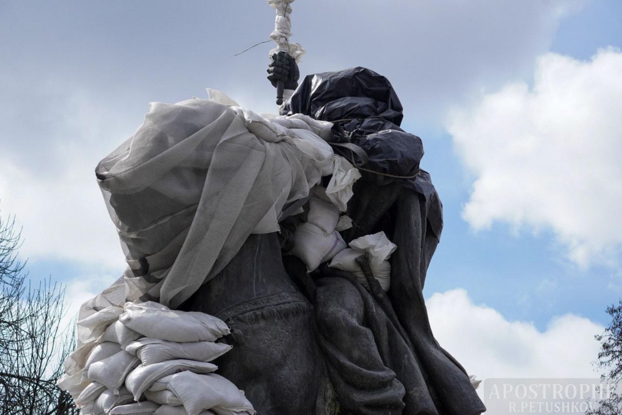 У Києві городяни захистили від обстрілів пам'ятники Сагайдачному, Хмельницькому та княгині Ользі.