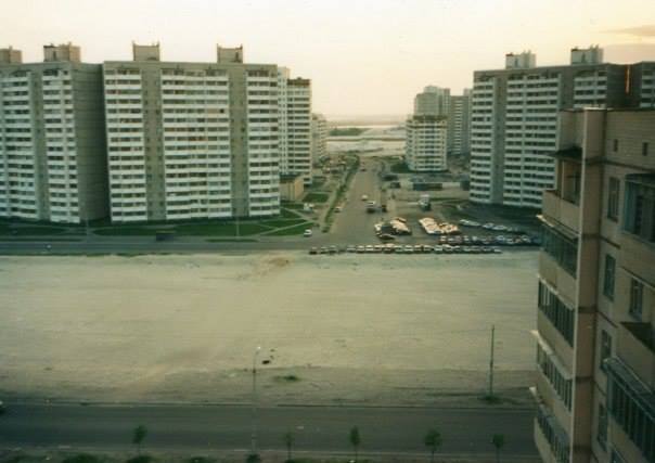На фотокартках - все ще зовсім пустий масив, без зелених насаджень та особливої інфраструктури: звичайний спальний район того періоду.