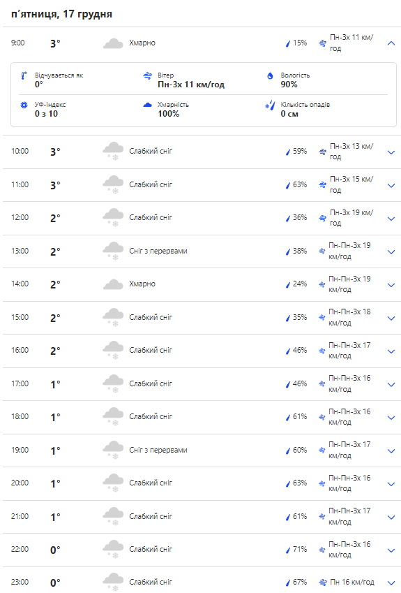 Сніг у Києві 17 грудня - погодинний прогноз погоди