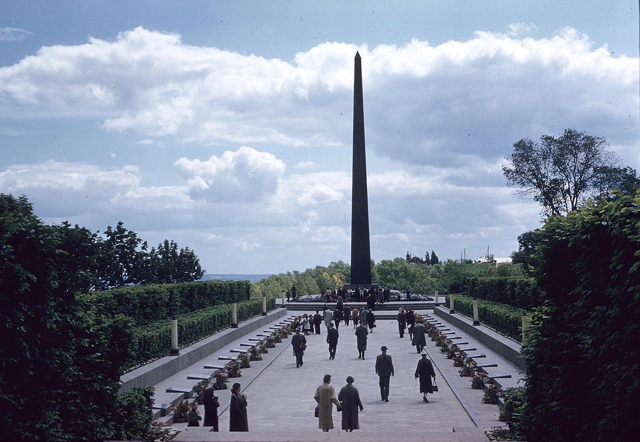 Що важливо - фотокартки кольорові. На них - розмірене життя мешканців та гостей столиці. На фотокартках, зокрема, можна побачити руїни Успенського собору Києво-Печерської лаври, парк Слави, оглядовий майданчик з Печерську на Поділ, приватні будиночки біля проспекту Науки, басейн "Динамо" та тоді ще Республіканський стадіон.