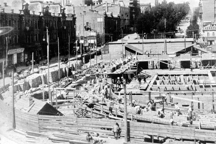 У мережі з'явилися історичні фотографії будівництва київського Бессарабського ринку у 1910 році.