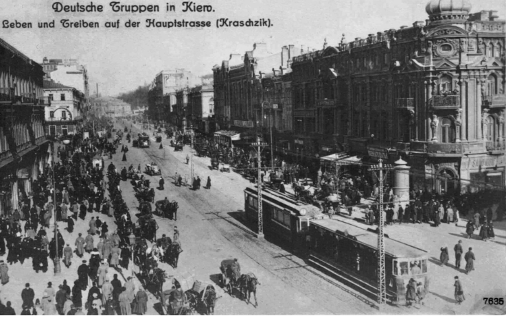"Весна 1918 року. Київ. Український панцирник у місті", – так підписав знімок один із німецьких фотографів.
