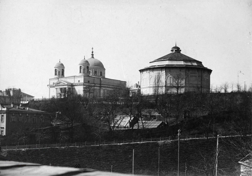 На початку ХХ століття мода на панорами поступово дісталася й Києва. Директор Київського художнього салону Іван Замараєв отримує у липні 1901 року земельну ділянку для облаштування павільйону під художні виставки. За це Київська Міська Дума встановила орендну плату 1500 рублів на рік, висунувши додаткові умови розміщення у виставкових залах експозиції переважно релігійного спрямування.