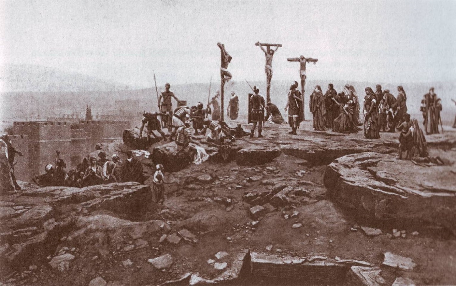 Як відомо, наприкінці ХІХ століття Європу охоплює мода на тематичні панорами – величезні картини, що утворюють коло, в якому знаходяться глядачі. Цю оригінальну технологію, яка стала своєрідною попередницею тривимірного простору, винайшов ще наприкінці XVIII століття винахідник із Шотландії Роберт Баркер. Особливою популярністю серед європейців мали панорами на релігійну тематику. Справжню сенсацію тоді викликала рельєфна картина "Розп'яття Христа" Бруно Пігльхайна, створена у 1886 році у співавторстві з пейзажистом Йозефом Крігером та Карлом Губертом Фрошем, який відповідав за архітектурні елементи композиції. Німецькі майстри відтворили сцену розп'яття Ісуса Христа в оточенні реконструйованих околиць Єрусалиму. Основний ескіз було нанесено на полотно за допомогою фотографічних пластин, спрямованих на нього з проектора. Уся робота тривала близько року. Розмір оригінального твору вражав: його довжина складала 120 метрів, ширина - 17 метрів.