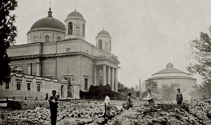 На той час популярністю користувалися художні панорами релігійної тематики. Відповідно до віянь того часу, у липні 1901 року директор Київського художнього салону Іван Замараєв отримав земельну ділянку для облаштування павільйону під художні виставки.