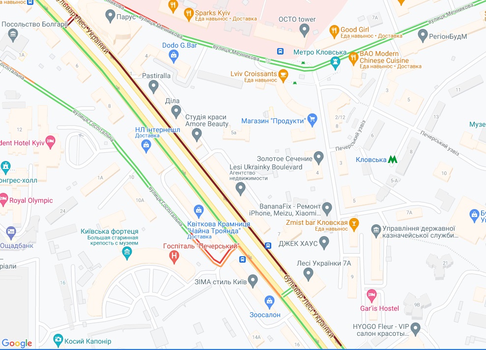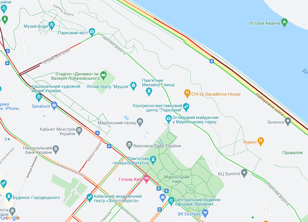 Водії стоять у заторі на проспекті Перемоги, поблизу станції метро "Політех". Ускладнено рух транспорту на Петровській алеї та бульварі Лесі Українки, а також біля станцій метро "Палац спорту" і "Лук'янівська". Невеликі пробки утворилися на Набережному шосе і на Набережно-Хрещатицькій.
