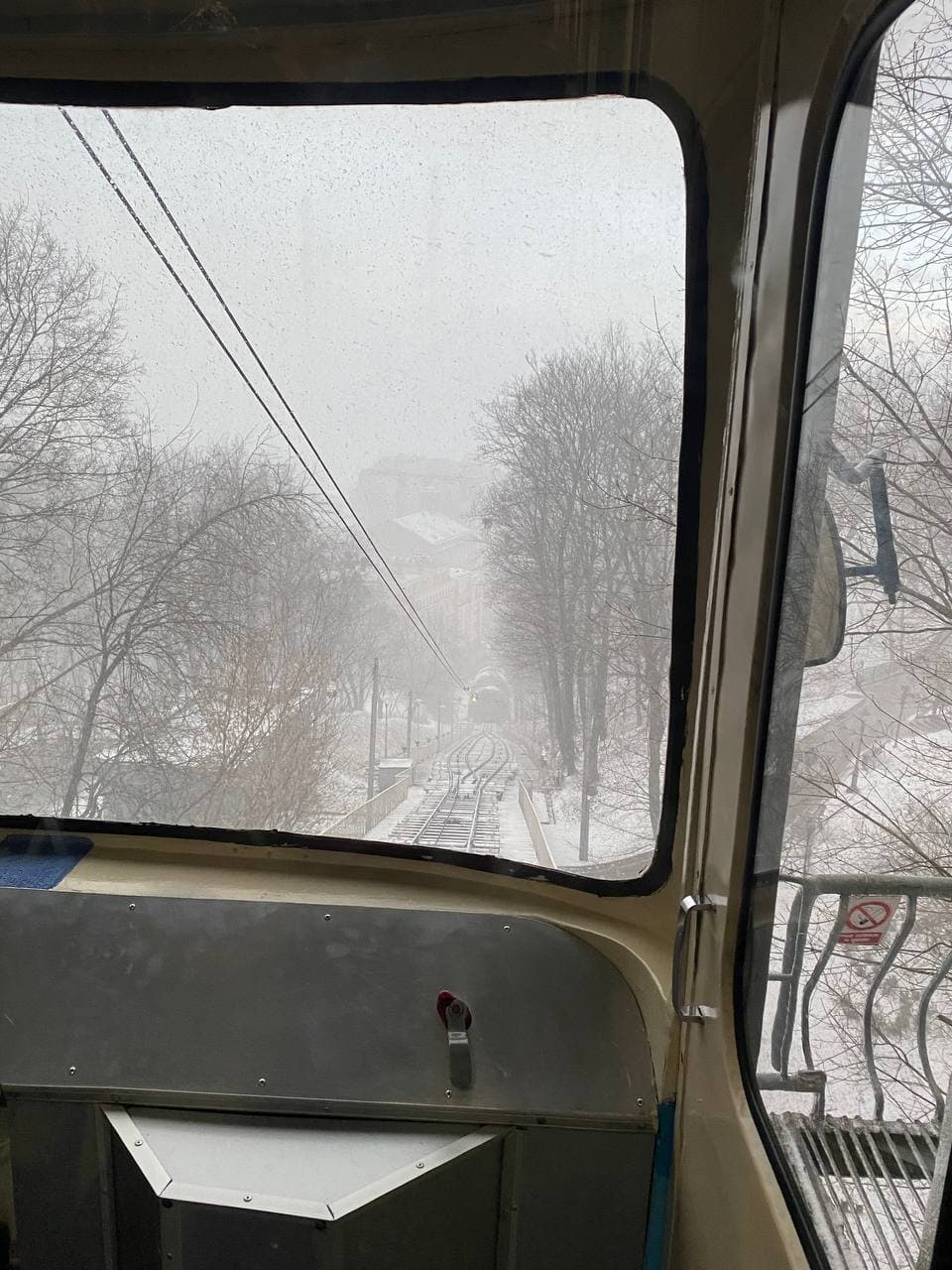 Кадри зроблені ввечері в центрі столиці, на фунікулері.