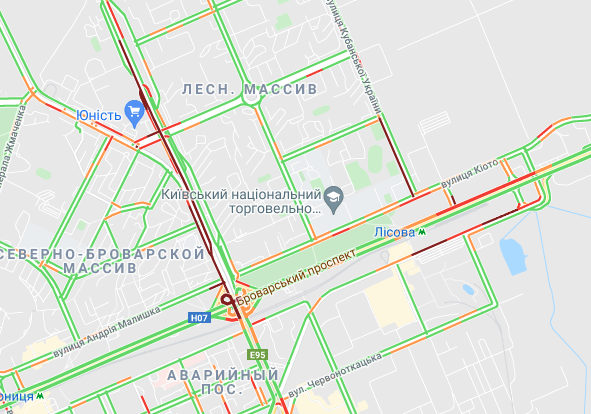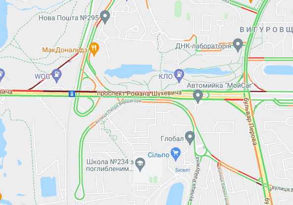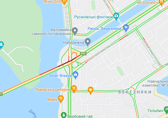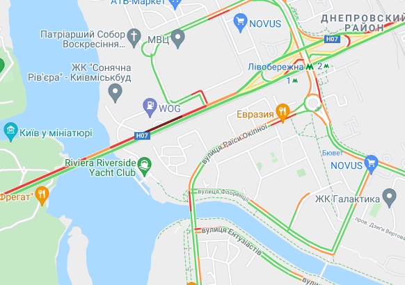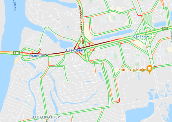 Важко проїхати по проспекту Романа Шухевича, вул. Оноре де Бальзака, біля ринку "Юність" (вул. Братиславська і Миропільська), проспекту Соборності (біля ринку Березняки), а також біля станцій метро "Лісова" і на під'їздах до Русанівського мосту. Стоять авто по проспекту Миколи Бажана, між станціями метро "Осокорки" і "Славутич".