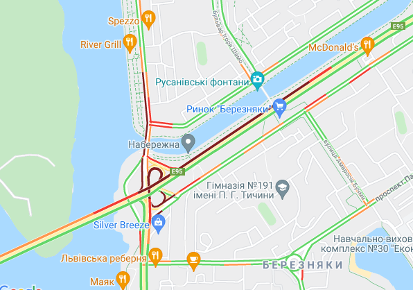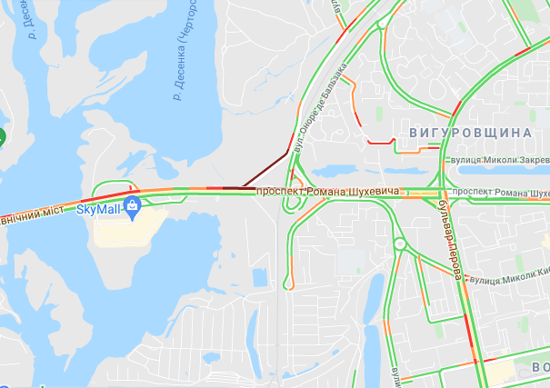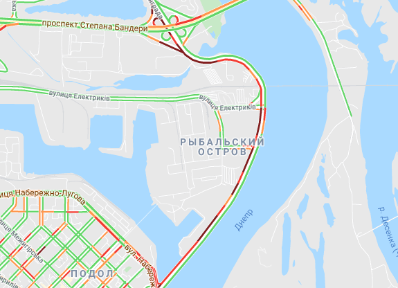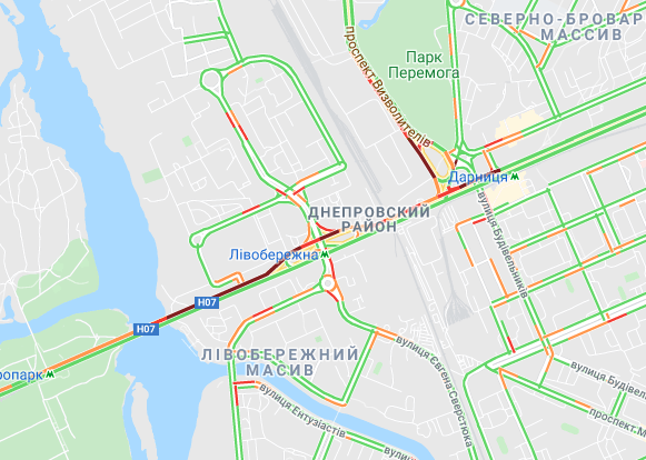 Важко проїхати по проспекту Романа Шухевича і вул. Оноре де Баьзака, проспекту Соборності (біля ринку Березняки), а також біля станцій метро "Дарниця" та "Лівобережна". Коштують авто по проспекту Миколи Бажана, між станціями метро "Осокорки", "Позняки" і "Славутич".