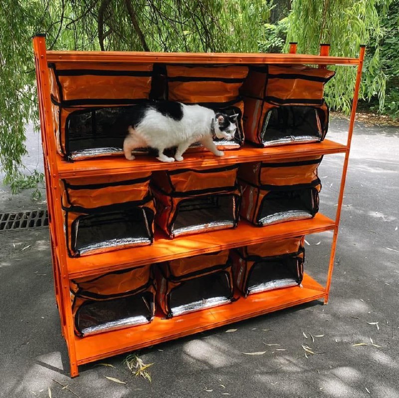 У Дніпровському районі Києва спорудили будиночок для котів з сумок кур'єрської служби.