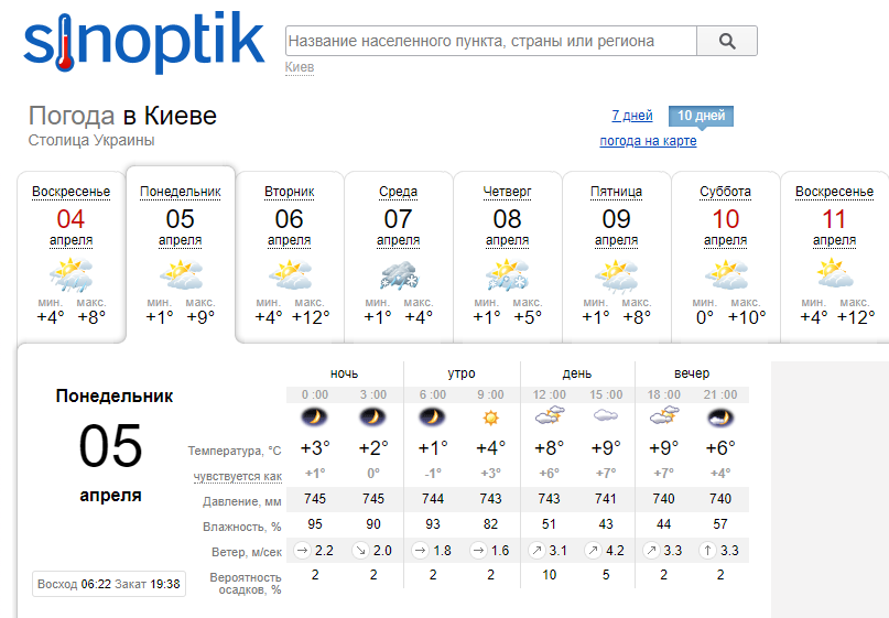 У середу, 7 квітня, в столицю прийде різке похолодання - очікується дощ зі снігом, температура повітря знизиться до +4 градусів вдень і +1 вночі. Така ж погода очікується і в четвер, 8 квітня, але вранці вигляне сонце, а дощ припиниться в другій половині дня.