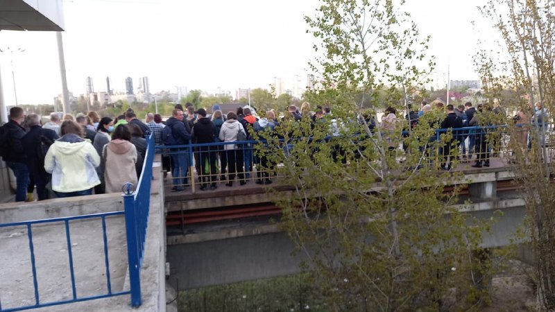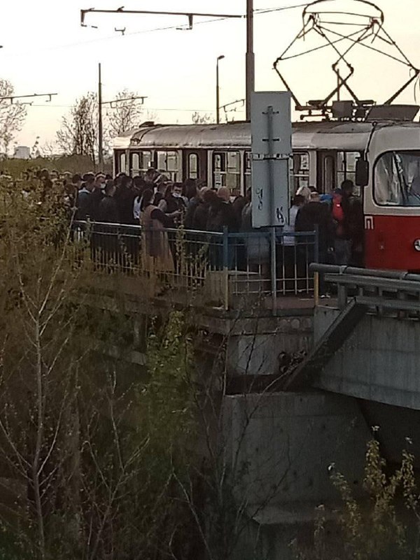 У Мережі з'явилися фото натовпу киян на зупинці трамвая на Троєщині, не дивлячись на прохання влади користуватися громадським транспортом лише за крайньої необхідності.