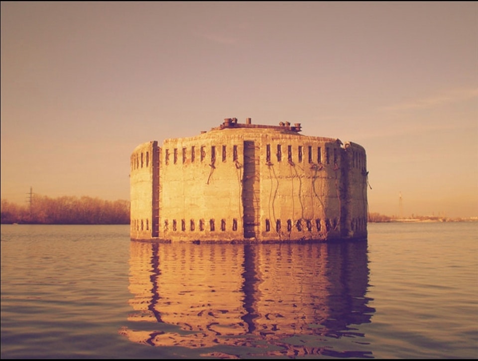 Багато хто помічав, що посеред Дніпра, неподалік Південного мосту та Осокорків, знаходиться загадковий об'єкт у вигляді круглої залізобетонної вежі, що на кілька метрів височить над водою.