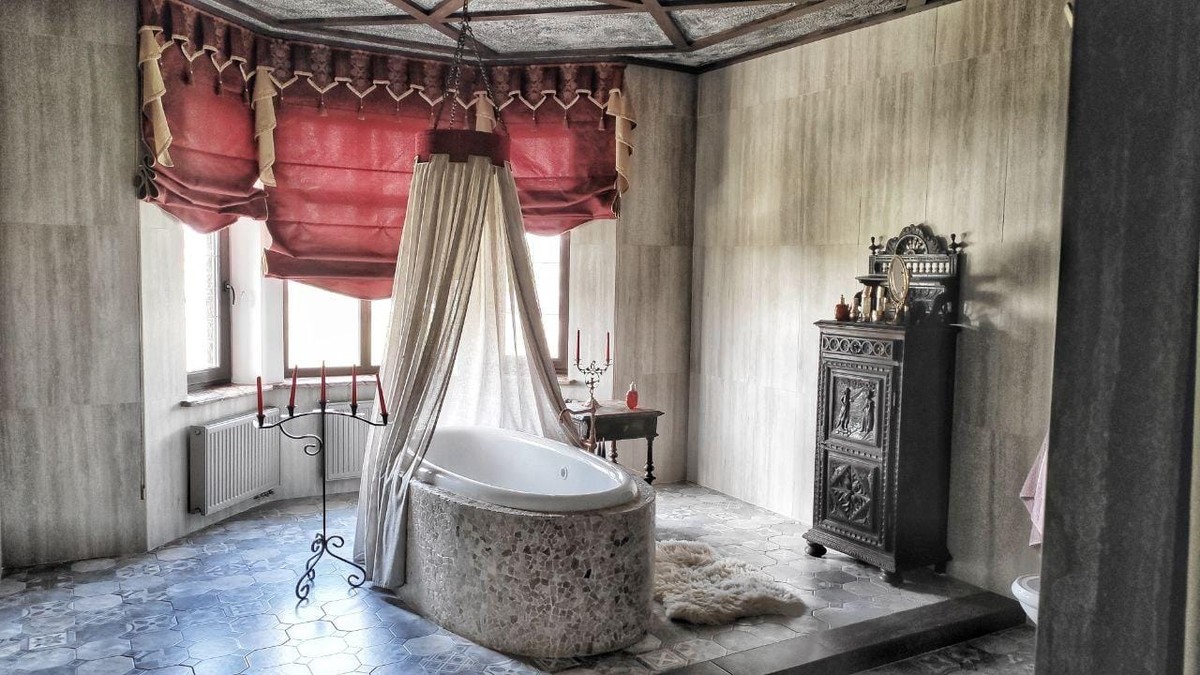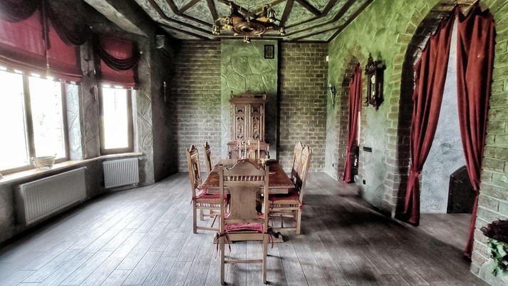 "Відчиняючи двері розкішного, величного і трохи таємничого замку, ми потрапляємо в Середньовіччя... Нас зустрічають величаві 12-метрові стелі холу, антикварні меблі французького походження (які доставлялися в Україну кораблями)", - зазначає автор повідомлення.