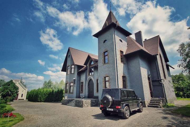 "Замок" площею 500 кв.м розташований за 8 км від столиці. Земельна ділянка - 1,2 га. Там є будинок охорони з гаражем, а також стайні площею 120 кв. м та власний сквер. На території облаштували озеро, альтанку та фонтан, садок, розарій.