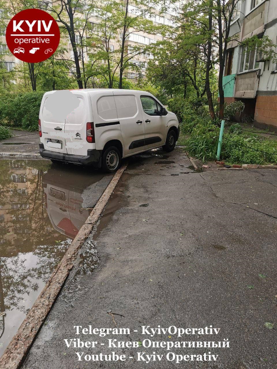У Києві на Троєщині на фото потрапив автомобіль служби доставки, який заблокував тротуар для місцевих жителів.