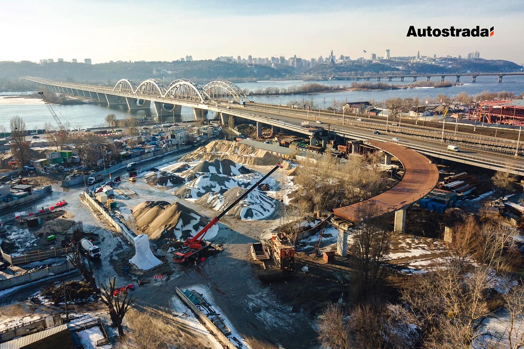 Раніше повідомлялось, що компанія "Автострада" планує завершити будівництво з"їздів з естакади Дарницького мосту на Дніпровську набережну в Києві до кінця липня 2023. Група Компаній "Автострада" у жовтні 2021 уклала контракт на спорудження двох з"їздів з мосту на Дніпровську набережну.