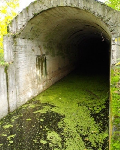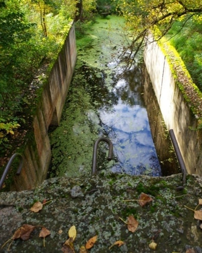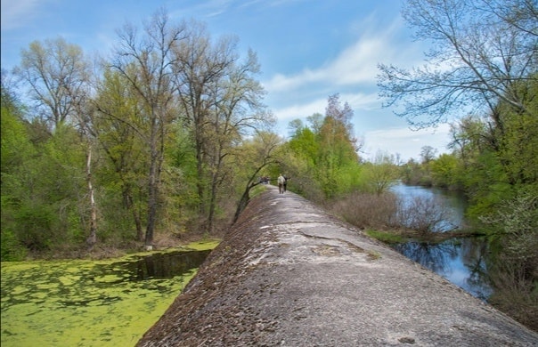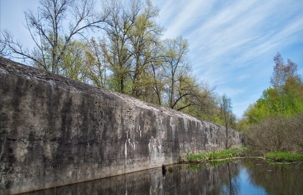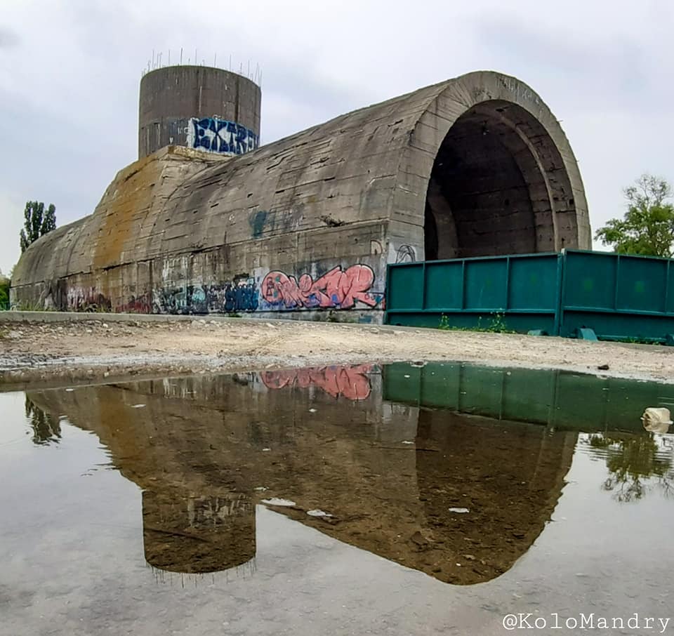 "Першим етапом будівництва було спорудження велетенських кесонів, один з них зберігся в парку "Наталка". Його висота складає 17 метрів, довжина - 52 метри. Після закінчення Другої світової війни продовження будівництва було визнане нерентабельним, і будівництво закрили в 1949 році. Обладнання та матеріали були використанні при спорудженні метро в Києві", - пише автор.