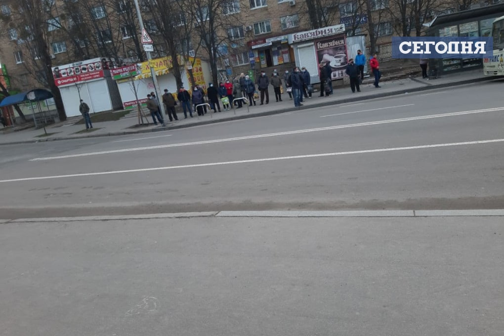 Така ж ситуація і на зупинках громадського транспорту - там якщо і є черга, то в ній дотримуються всіх рекомендацій (люди в масках і намагаються дотримуватися дистанції).