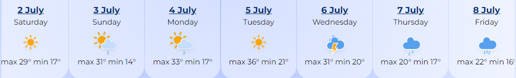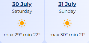 В останні п"ять днів липня стовпчики термометрів вдень покажуть до +29...+31 градуса, а вночі буде прохолодно зі середньою температурою близько +20 градусів.