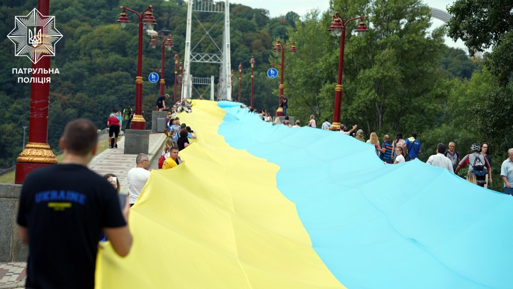 У неділю, 28 серпня у Києві лівий та правий береги Дніпра об'єднали прапором України завдовжки 430 метрів. Для його пошиття витратили 1,5 км тканини.