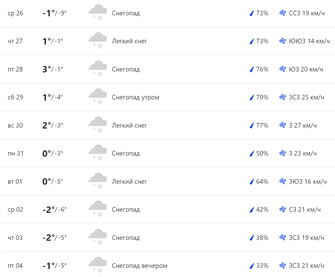 За даними метеостанції, 26, 28, 29, 30 та 31 січня, 2, 3 та 4 лютого швидкість вітру досягне 20 км на годину.
