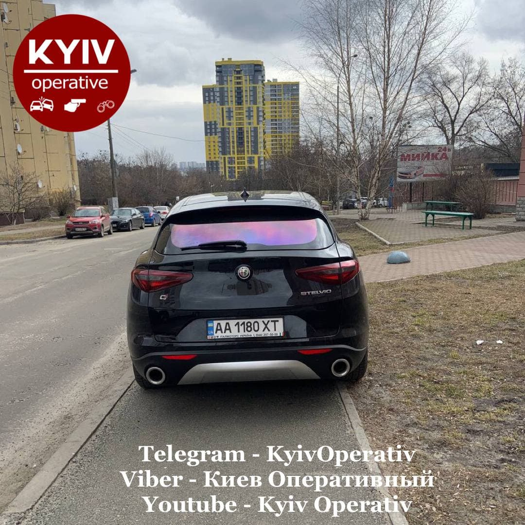У Києві водій шикарного автомобіля Alfa Romeo залишив свій транспортний засіб прямо на пішохідній доріжці в житловому масиві в Солом'янському районі, повністю перекривши на ній можливість для руху.