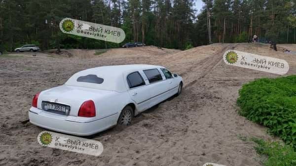 Кияни помітили на Новобіличах унікального "героя парковки", який залишив свій лімузин на піску.