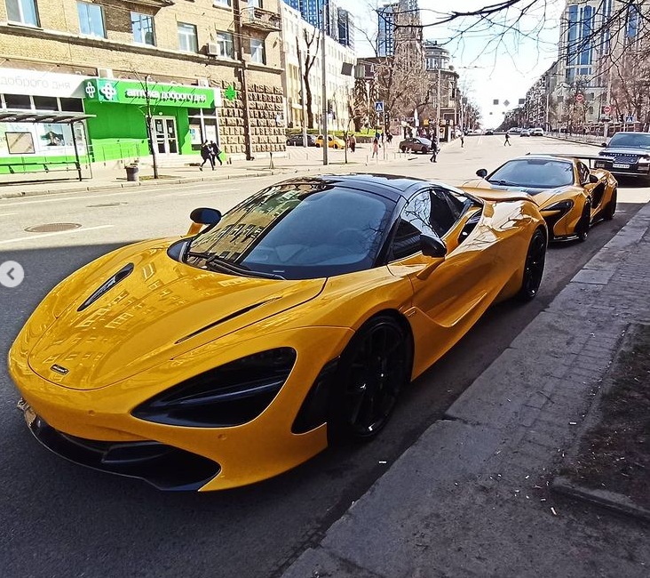 У центрі Києва зняли відразу два елітних суперкара McLaren жовтого кольору. Вони припаркувалися біля VIP-ресторану, де часто бачать дорогі машини.