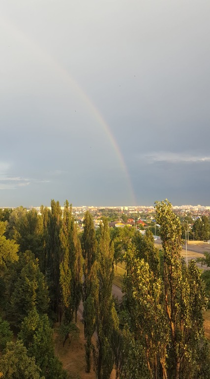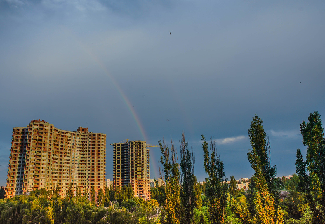 У вівторок, 29 червня, після потужної зливи мешканці одного з районів Києва змогли побачити рідкісний оптичний феномен - величезну веселку, що розкинулася на пів неба.