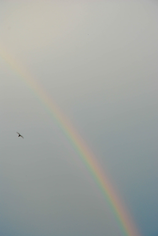 На одному зі знімків різнобарвна дуга зметнулася над недобудованими багатоповерхівками, на іншому - накрила житловий район.