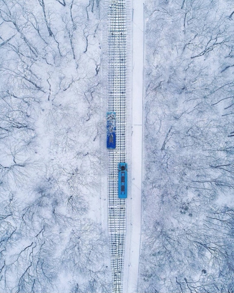 У мережі оприлюднили незвичайне фото київського фунікулера. Унікальний столичний транспорт було знято з висоти пташиного польоту.