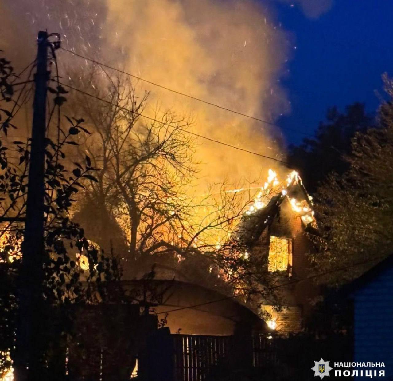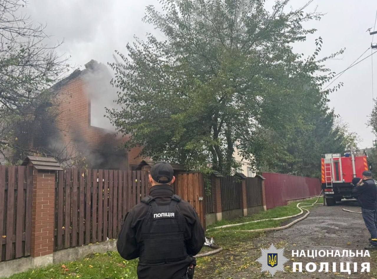 "На Київщині внаслідок падіння уламків ворожого безпілотника загорівся приватний житловий будинок. Будівля частково зруйнована. Рятувальники оперативно загасили пожежу".