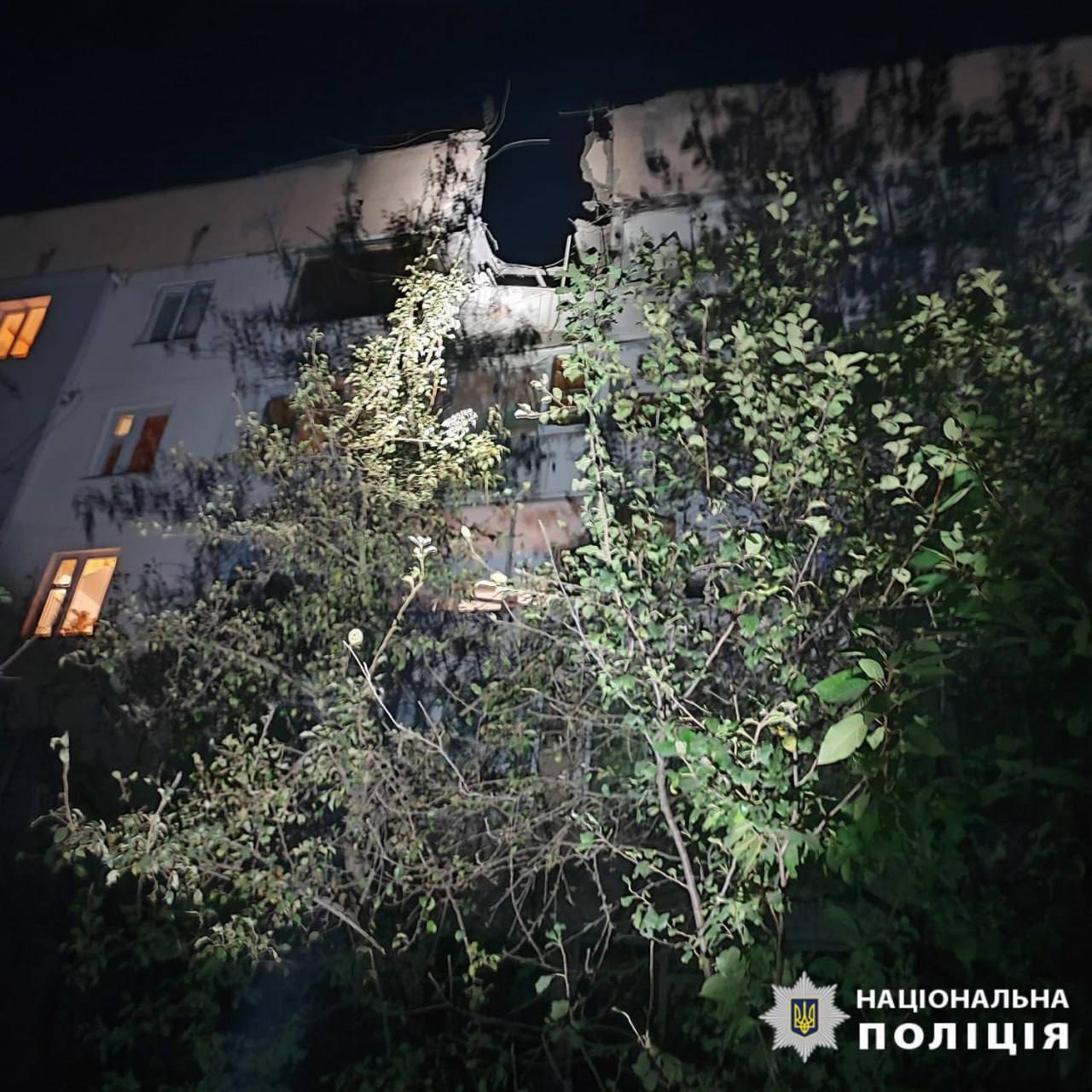 В дописі уточнили, що станом на 08:30 в одному з районів пошкоджено два багатоквартирні та один приватний будинки, гаражне приміщення, три автомобілі, а також місцевий ринок.