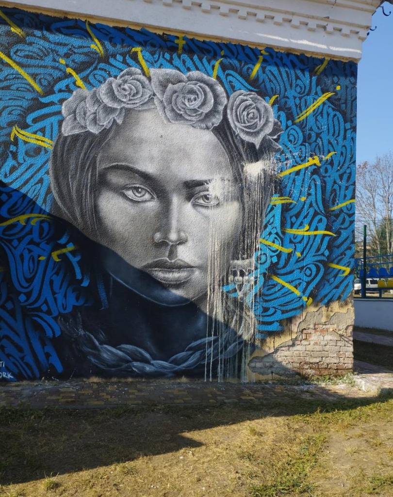 Пошкоджений вандалом мурал має назву "Портрет дівчини" й намальований як акт вшанування сили, яку проявили жінки під час війни.