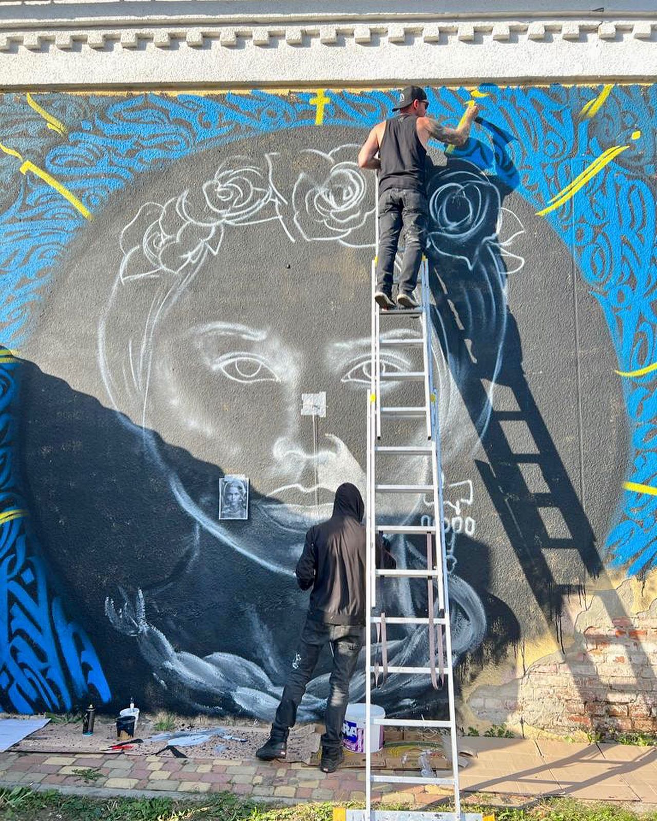 За інформацією Бучанської міськради мурал у мікрорайоні Склозаводський створили американські волонтери BANDIT, John Ashbaugh та Tristan George.