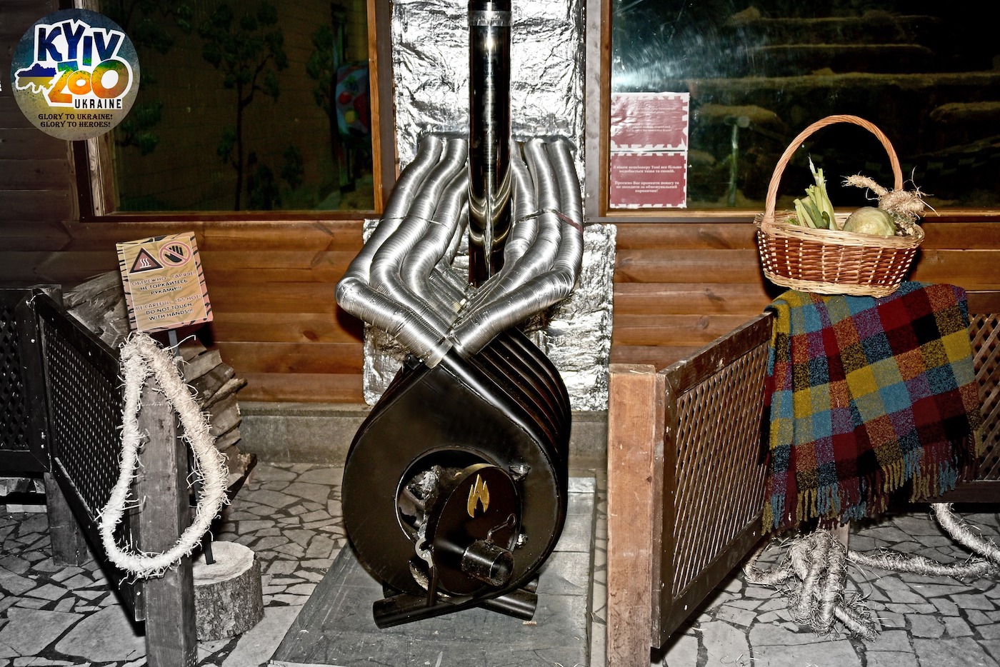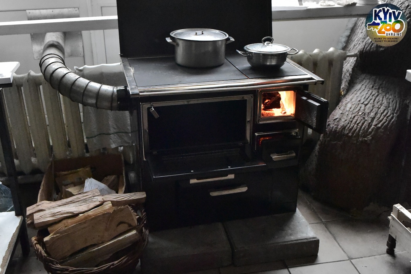 Зоопарк у Києві, як і все місто, тривалий час перебуває без електроенергії, що стало загрозою для виживання тварин у ньому. Однак працівники зоопарку знайшли вихід зі скрутного становища - встановили піч на дровах, щоб кожна тваринка була нагодована.