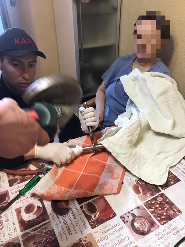 За словами Дмитра, жінка засунула пальці до насадки ручного блендера. Рятувальникам довелося пиляти "ногу" блендера, коли рука жінки була все ще всередині. Їм вдалося залишити на пальці постраждалої всього один поріз від піхов блендера. Команда також надала жінці медичну допомогу.