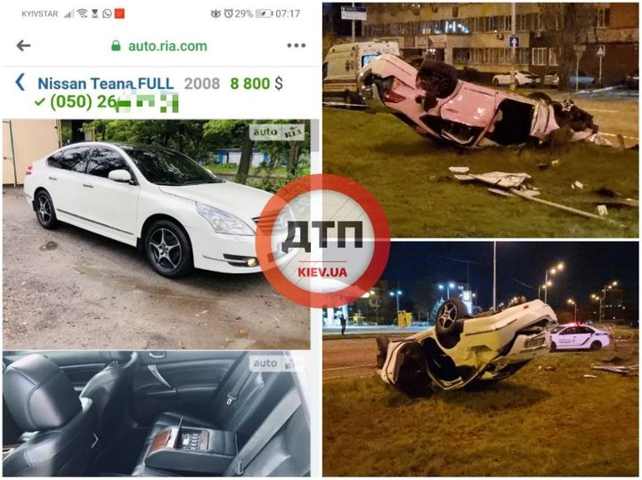 На auto.ria виявили Nissan Teana 2008 року, який потрапив у ДТП. Його водій знаходиться в розшуку. Оголошення зняли вранці 26 квітня.