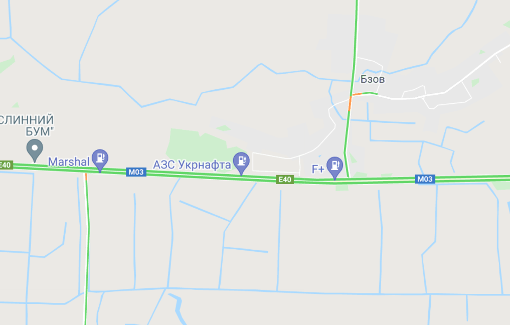 Як свідчать дані сайту Infoportal.kiev, станом на 8:00 рух біля села Бзів, розташованого на межі Бориспільского та Баришівського районів, повністю вільний.