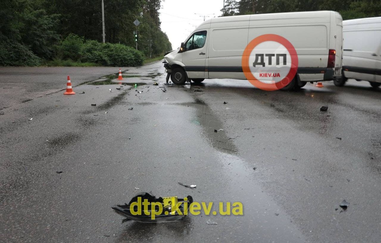 Мікроавтобус Volkswagen повертав на вулицю Газопровідну в той час, як Chevrolet на великій швидкості їхав зі сторони Пущі-Водиці, автомобілі не розминулися на мокрій дорозі. Після удару по дотичній водій Chevrolet не впорався з керуванням і авто відлетіло у сторону зупинки.