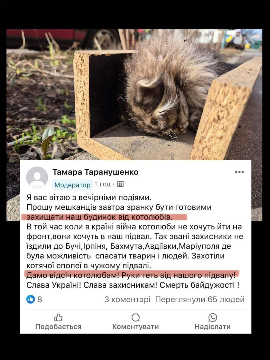 Згодом волонтери Kyiv Animal Rescue Group знайшли в підвалі трупи двох кошенят та одного живого.