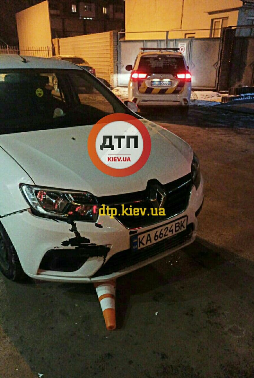 Далі повідомляється, що водій став засинати за кермом і мало не протаранив припаркований автомобіль. Після того, як Renault наїхала на фішку парку, яка, до того ж, була прив'язана ланцюгом до паркану, машина зупинилася.