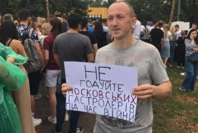 У публікації зазначено лише місце проведення концерту, але не згадується назва групи. На ВДНГ, де 4 серпня проходив концерт групи "Мумій Троль", стояв один чоловік-пікетник з плакатом, на якому написано "Не годуйте московських гастролерів під час війни".