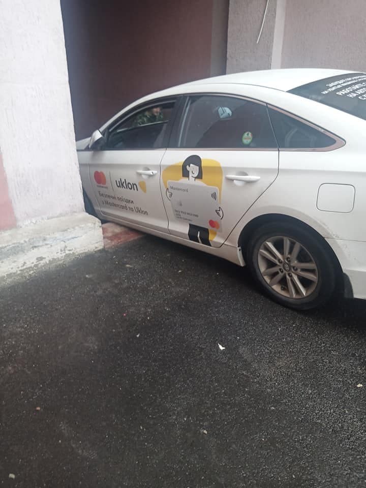 У Києві таксист намагався проїхати пішохідною аркою зі сходами і застряг.