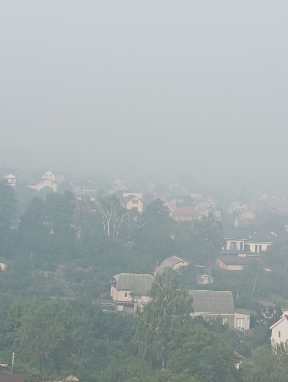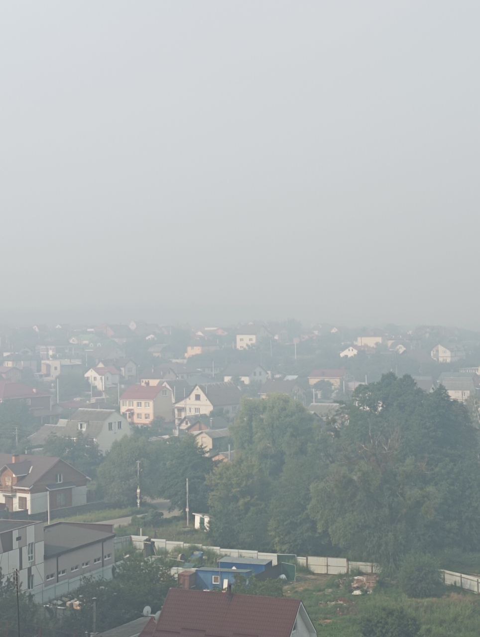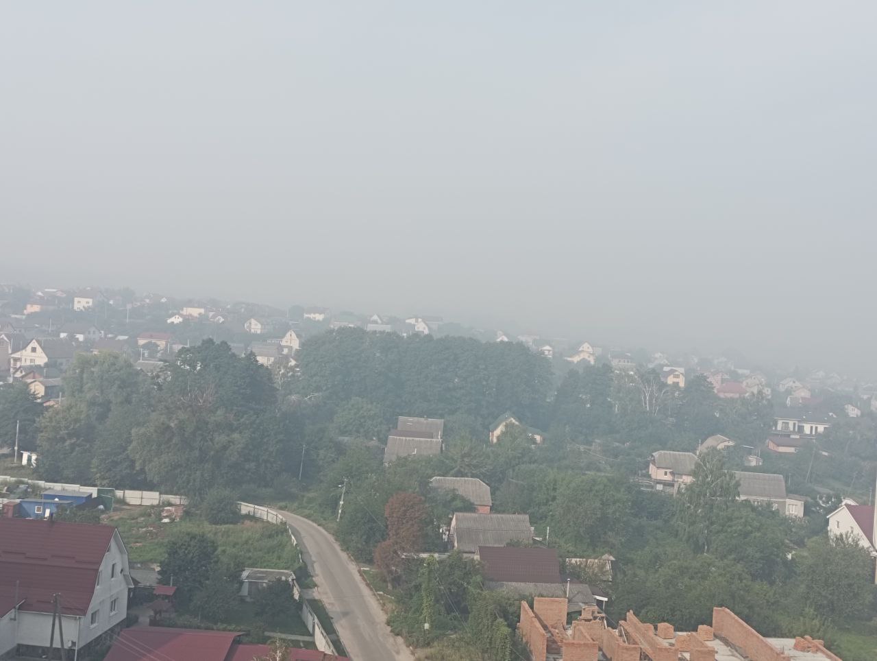 Дим затягнув і Бучу, місто - наче в тумані. Ось що бачать жителі Бучі зі своїх вікон із ранку 1 вересня: