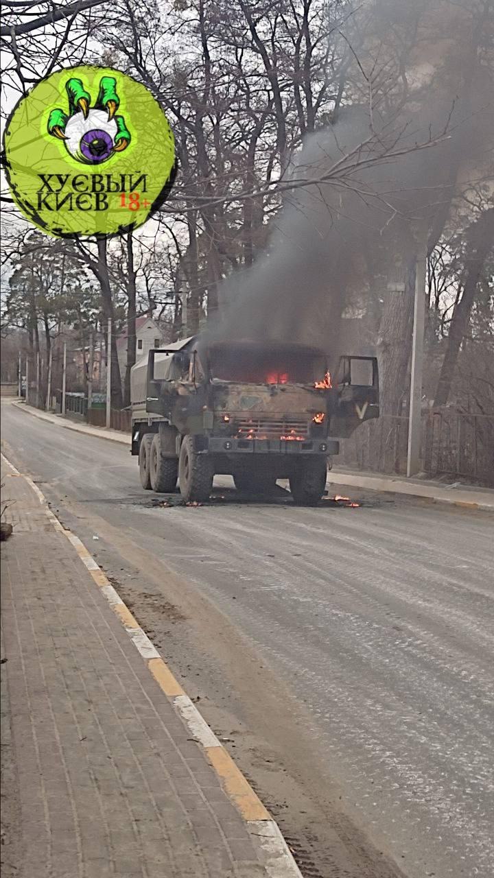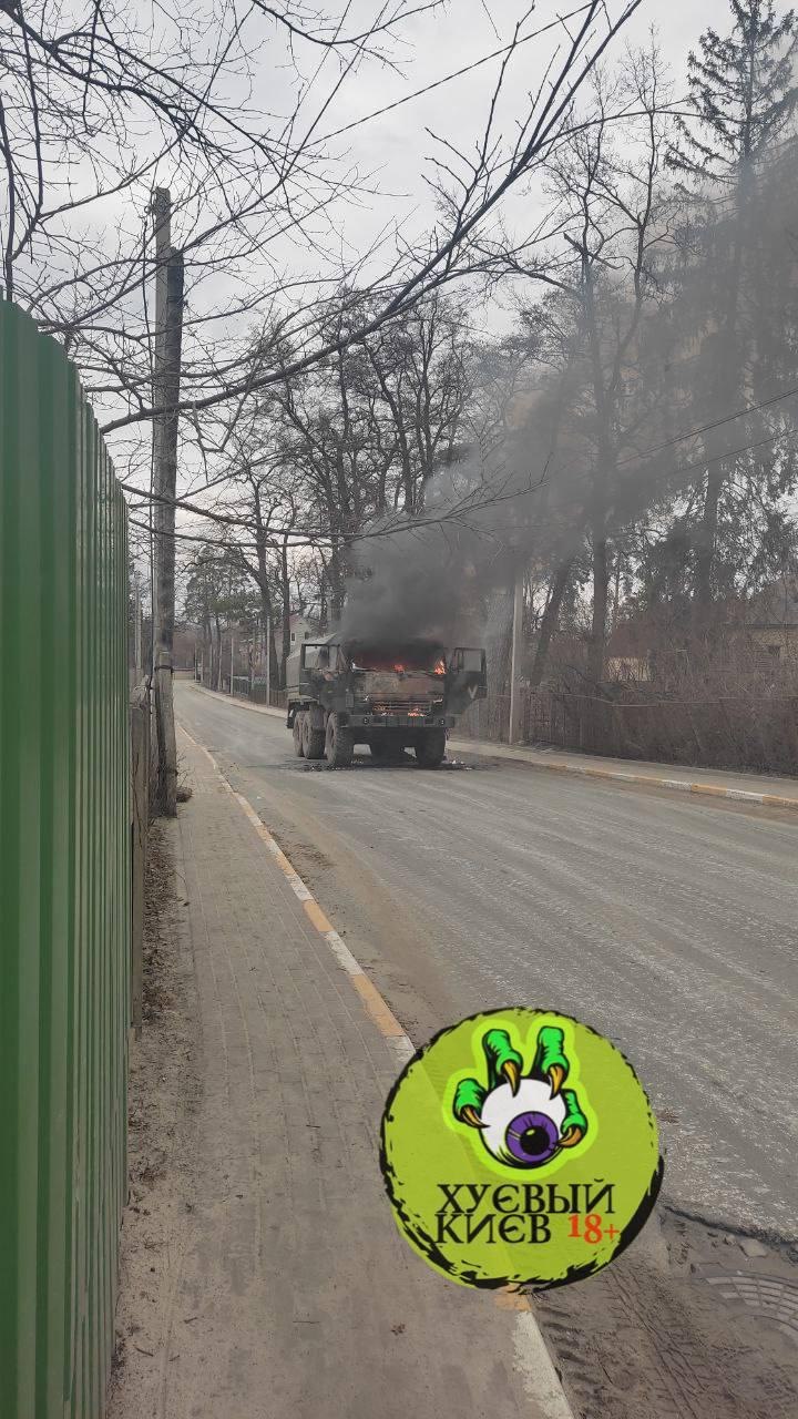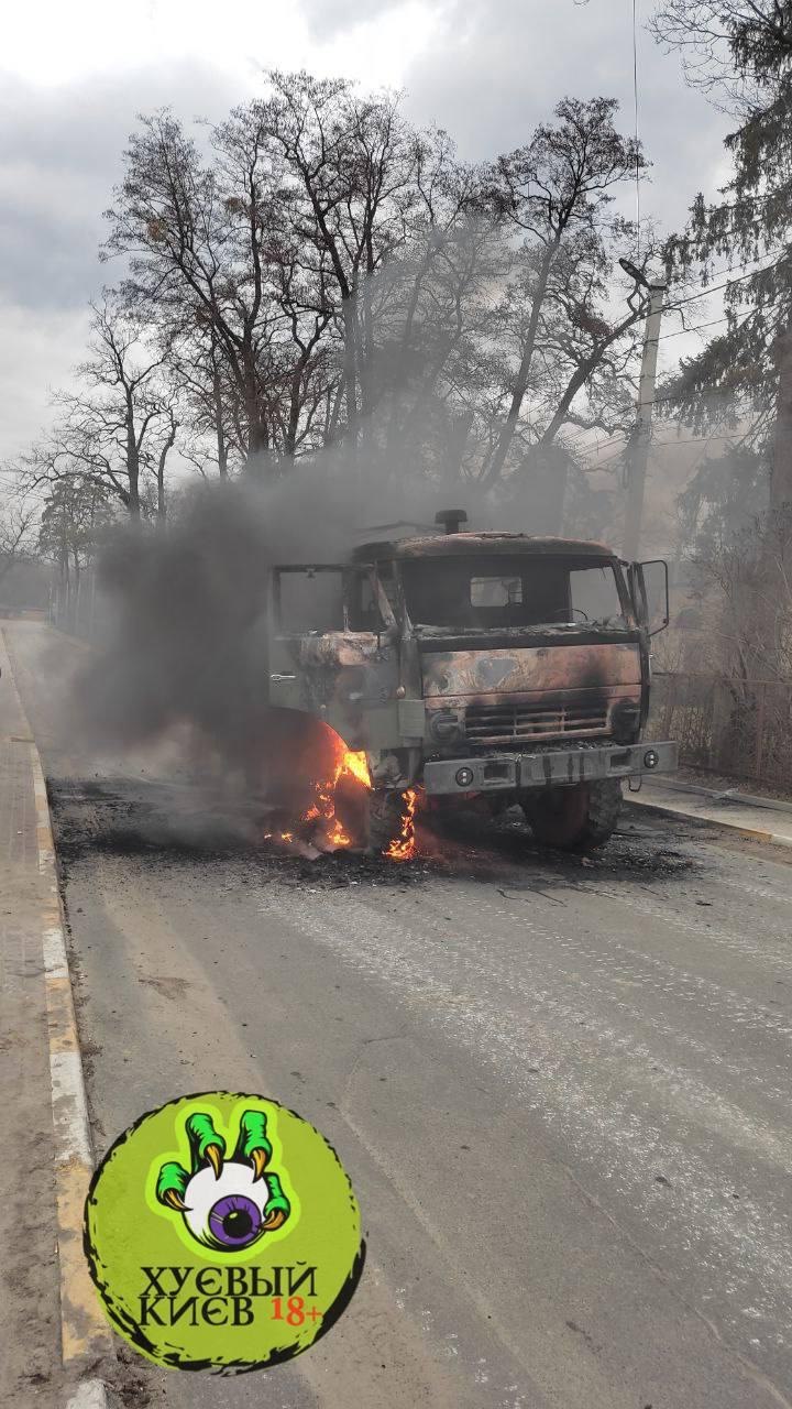 Під Києвом прості українці спалили КАМАЗ нацистів за допомогою коктейлю Молотова.