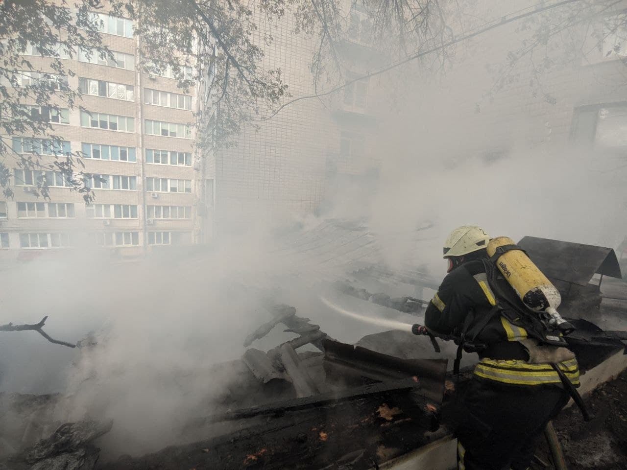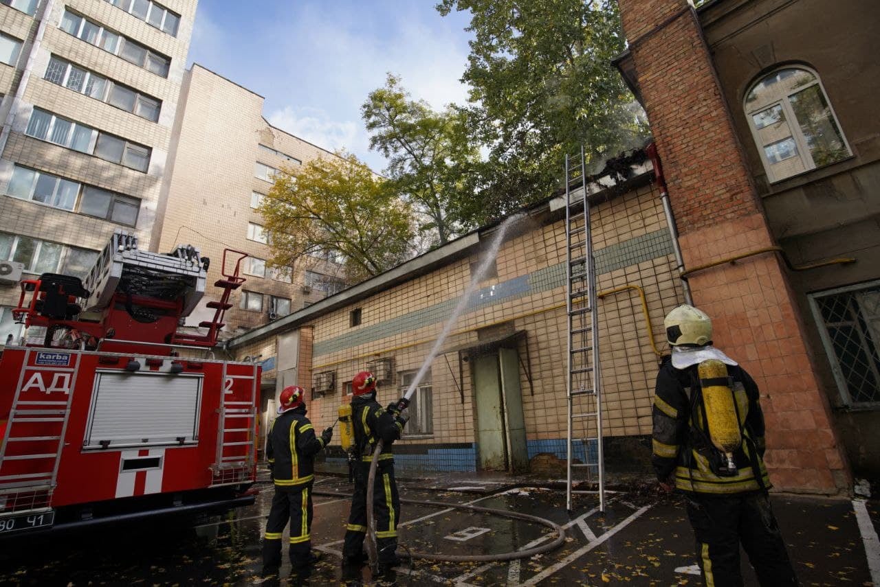 Співробітники ДСНС ліквідували пожежу в одній із будівель інституту урології на вулиці Винниченка, 9А в Києві, яка спалахнула у четвер, 14 жовтня.