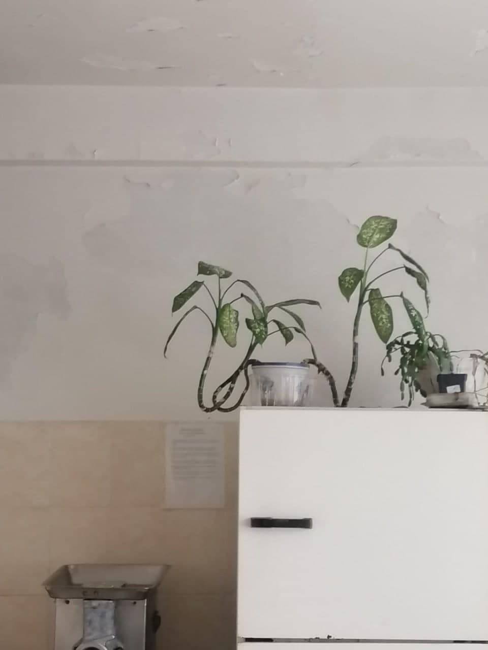В одній із київських шкіл Солом'янського району місцеві жителі зафіксували на фото цвіль та грибок на стелях, які почорніли від вогкості.