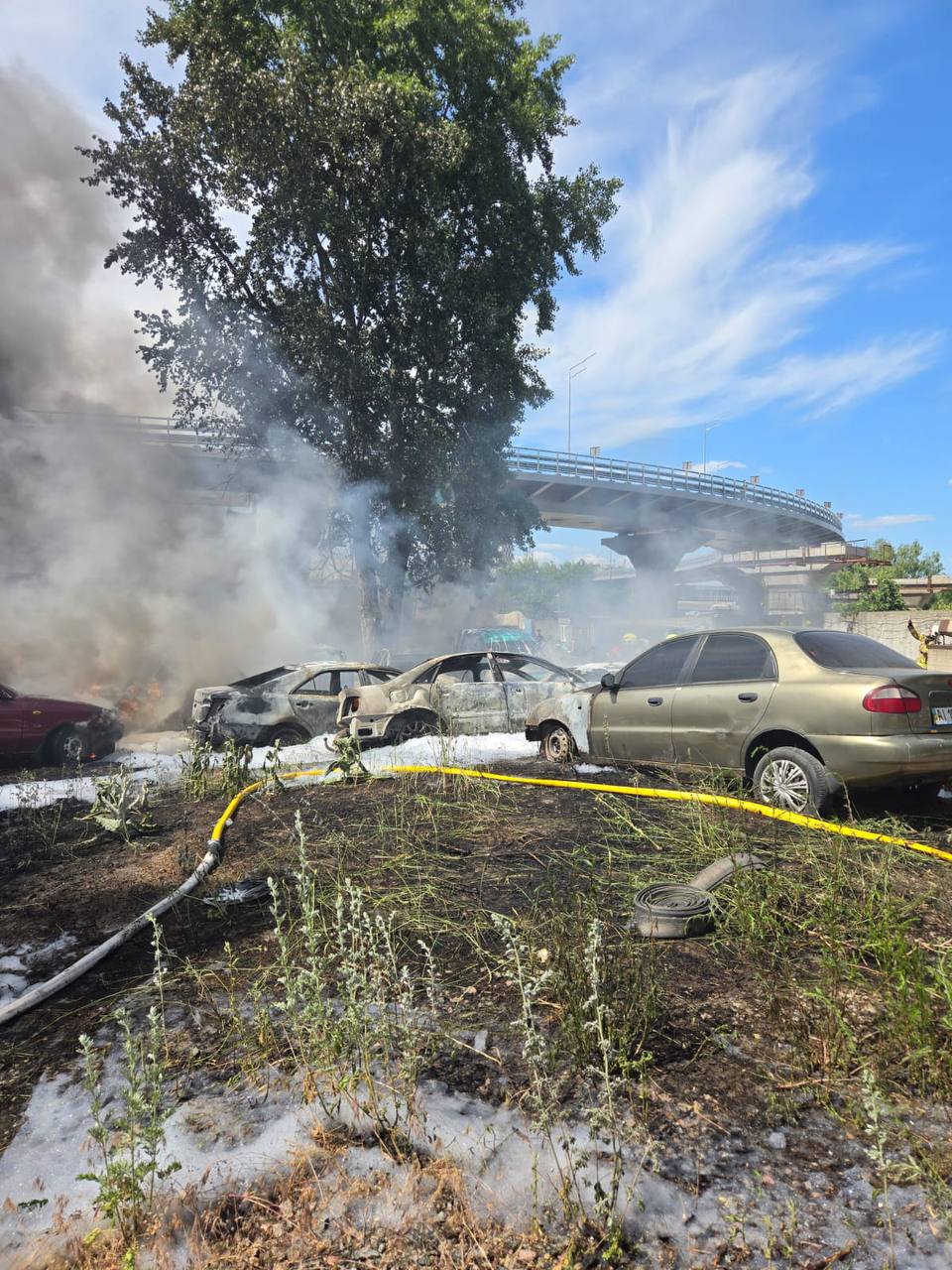Рятувальникам повідомили, що на одній зі штрафмайданчиків для машин сталося загоряння автівок із загрозою розповсюдження на поруч припарковані машини.